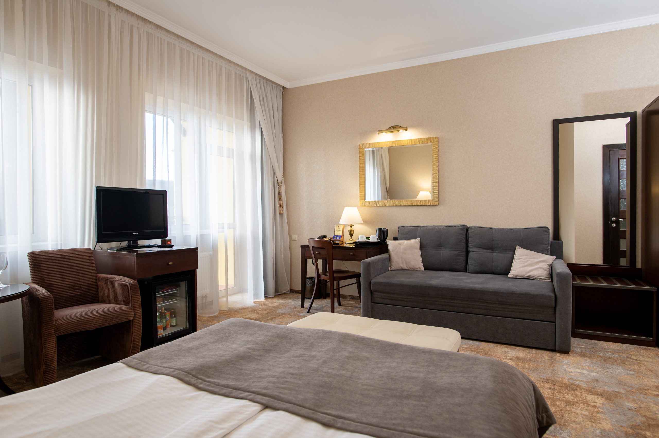 Просторий та світлий номер із комфортним спальним місцем й окремою зоною відпочинку з диваном. Для зручності гостей у номері просторий санвузол з ванною, феном та необхідними аксесуарами. Стильний інтер’єр, м’яке освітлення та розширені зручності забезпечують підвищений комфорт і приємну атмосферу для відпочинку. Вигляд із балкону відкриває чудовий краєвид на гори та селище, що додає ще більше затишку та можливості розслабитись.